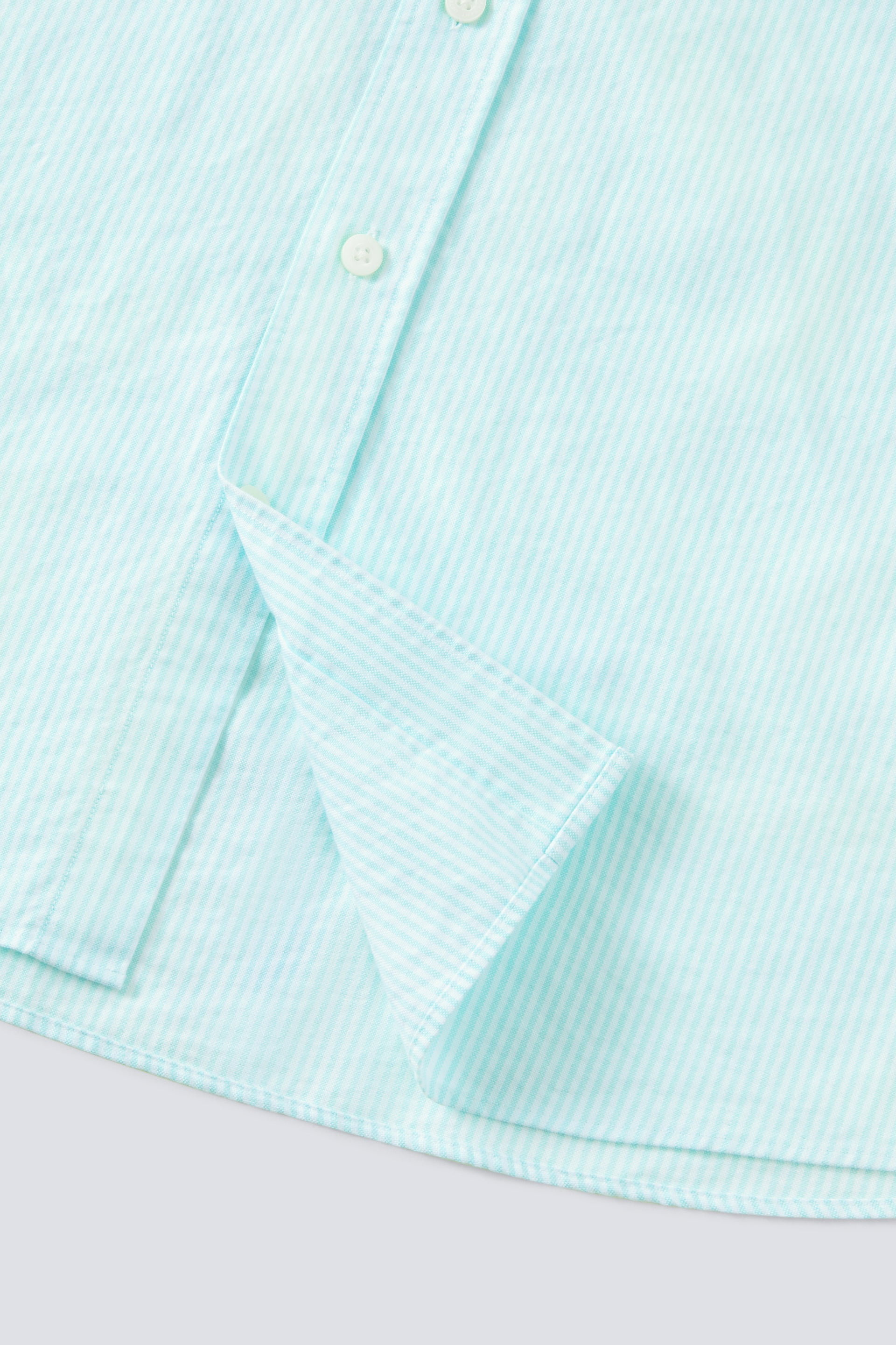Soft Oxford Button-Down Casual Shirt | Iced Aqua Stripes 25475N