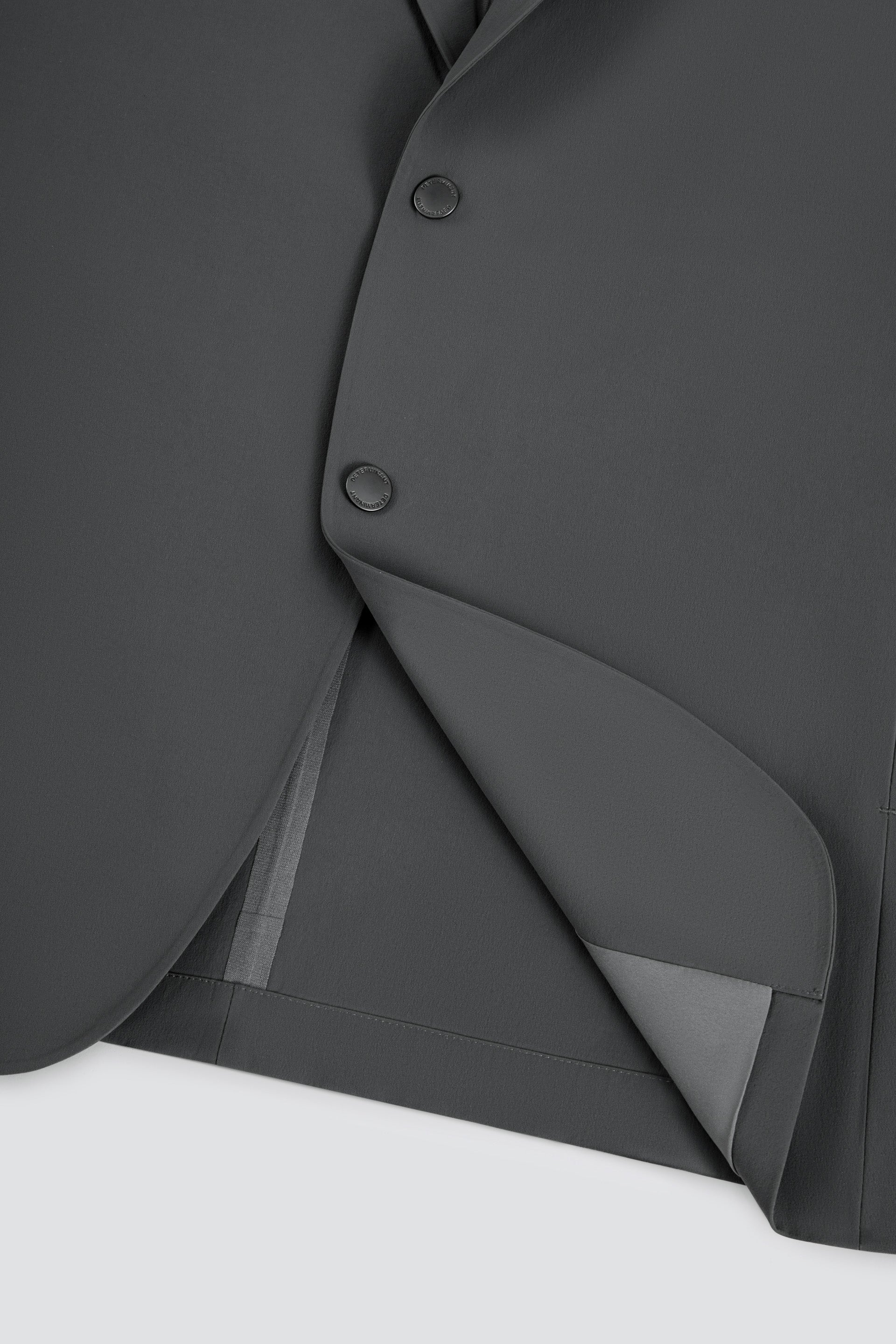 外套布料具備防潑水、抗皺及四向彈性,提供舒適穿著體驗與靈活活動度,全天保持專業形象;外套便於收納攜帶,即使從行李箱取出,亦能保持平整,可隨時穿著。配合金屬扣鈕及拉鍊側袋,為設計注入低調而實用的機能細節。