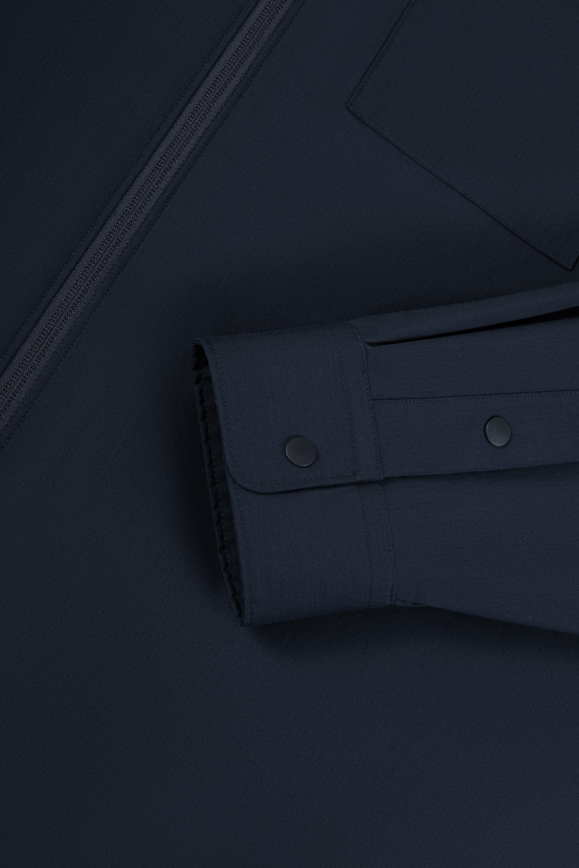 外套選用速乾布料,並配有防 UV 功能,適合作為換季時節的輕薄外層,穿著舒適自在,同時保留清爽、易於搭配的外觀表現。