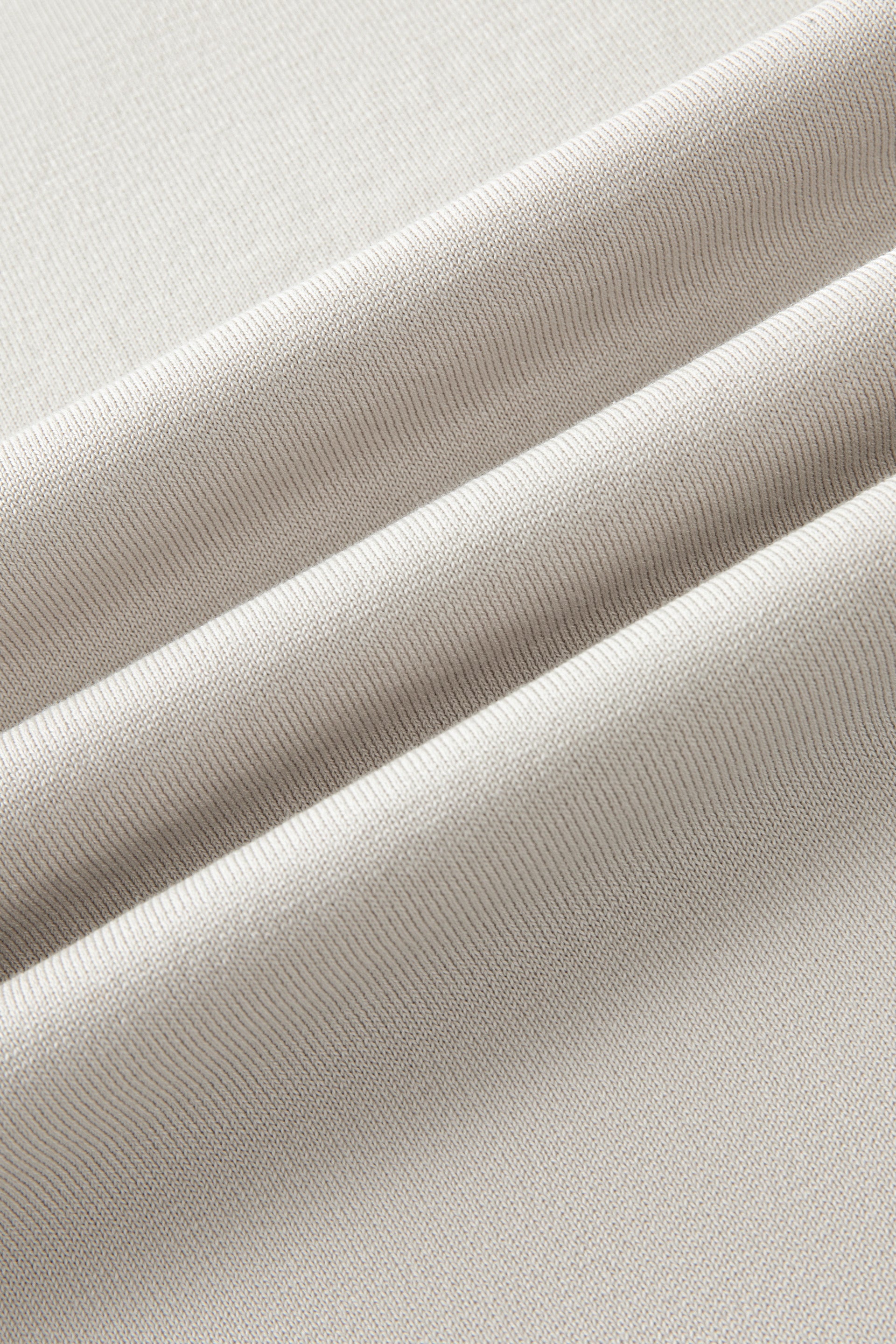 微弧形的無鈕領口設計,低調提升整體質感,同時在視覺上修飾頸部線條,營造更修長比例。袖口與下擺加入彈性收口細節,有效減少鬆垂或變形,維持乾淨利落的線條,讓造型由日間到晚間都能保持精緻有型。
