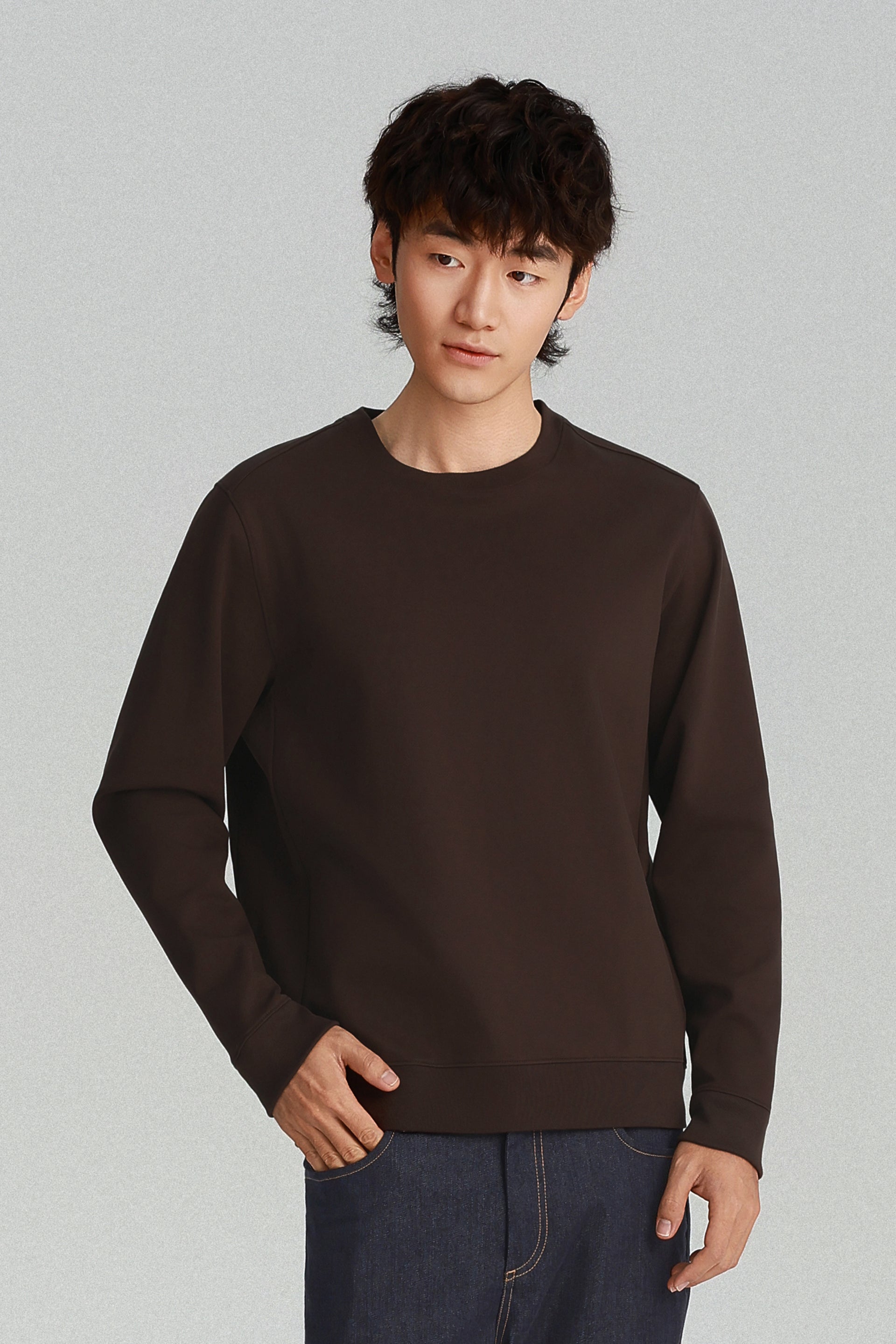 HeatGuard 斜紋提花圓領運動衫 | 深棕色 PT1106