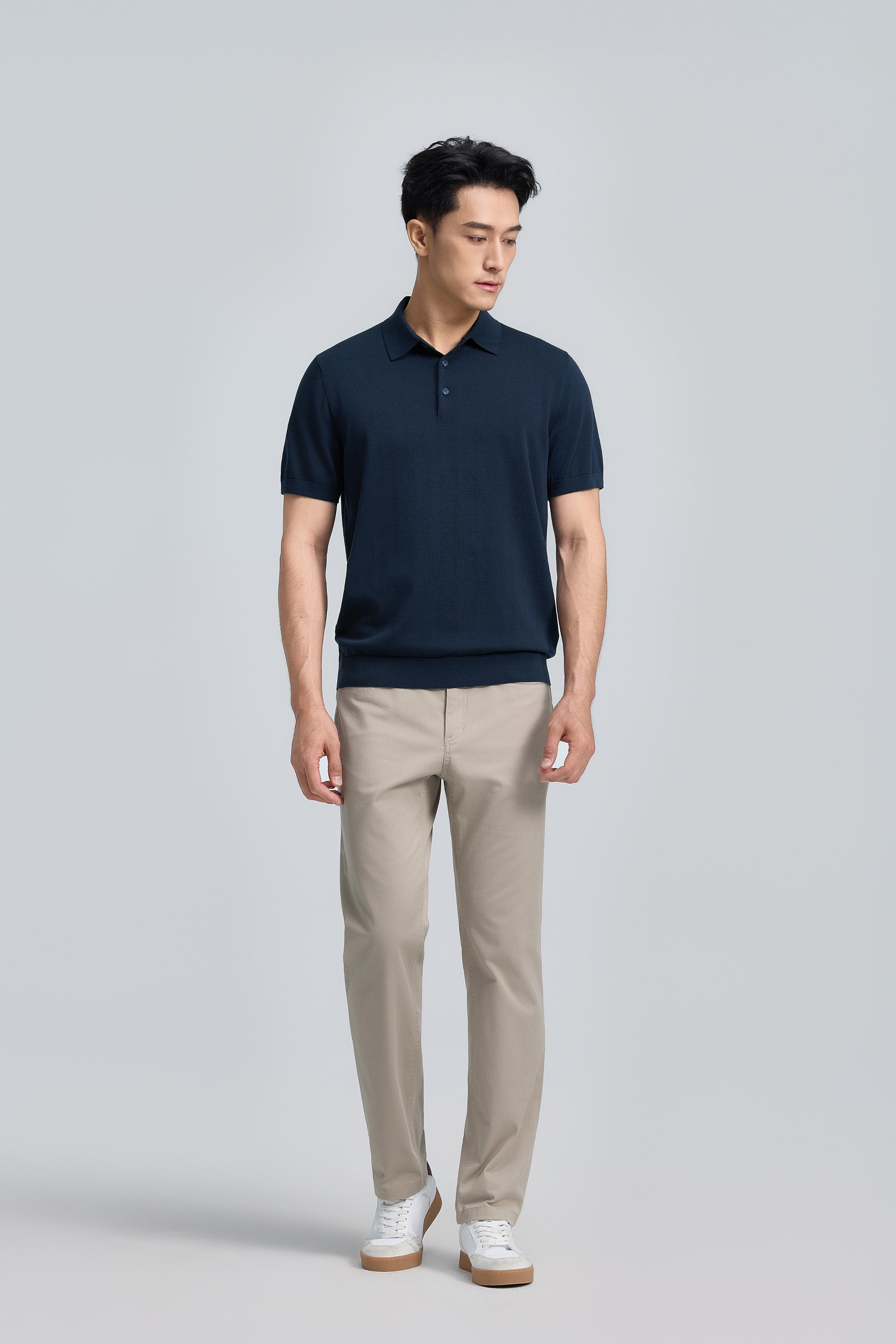 隨性而不失精緻,這款平針三鈕扣針織Polo 柔軟如毛衣的質感面料,選用優質混紡棉料精心打造,具備抗起球特性。